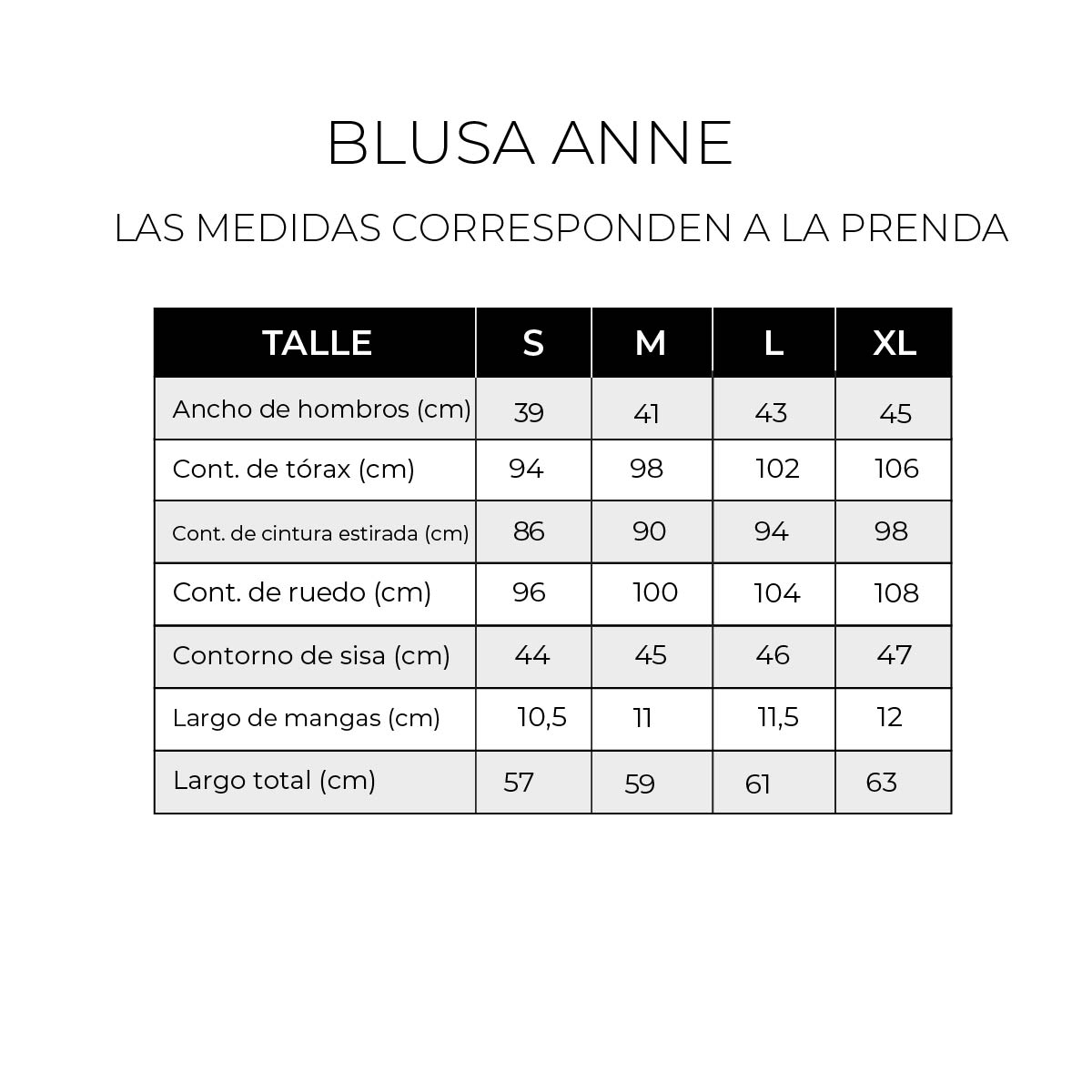 MEDIDAS TOMADAS DE LAS PRENDAS (Recomendamos tomar medidas sobre una prenda favorita).