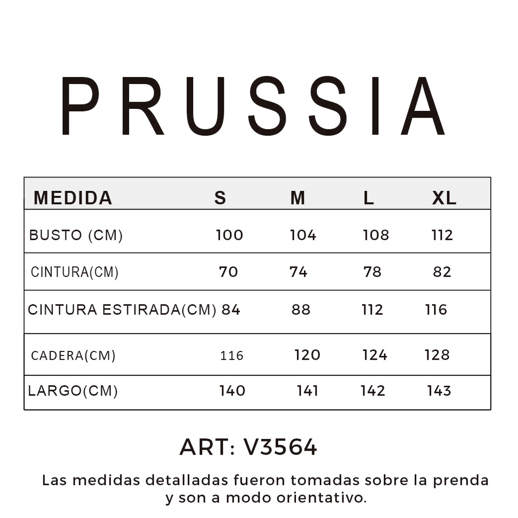 La modelo usa talle S. Su peso promedio es de 55 a 60 kilos y su altura entre 1.70 y 1.80 metros.