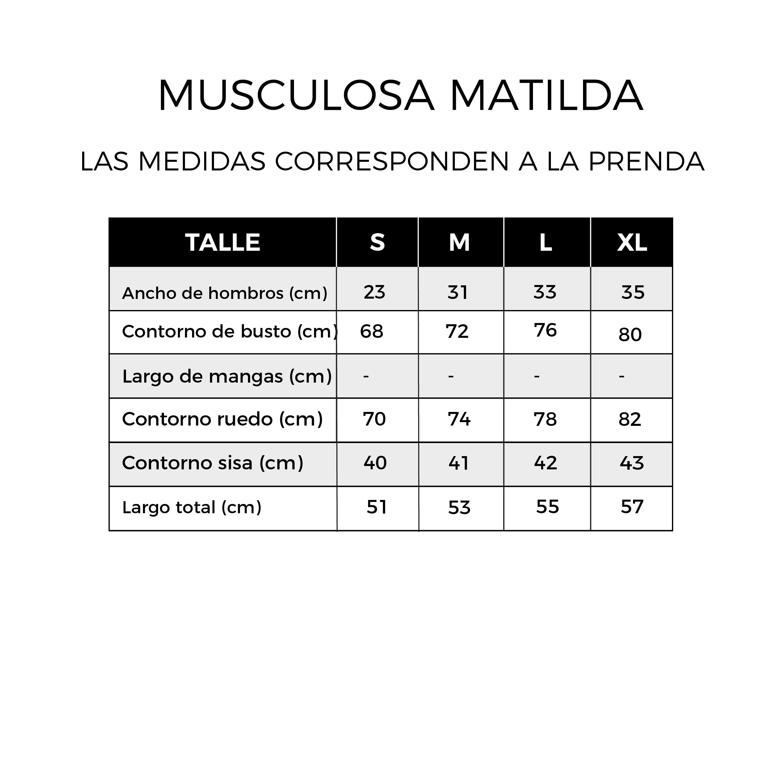 MEDIDAS TOMADAS DE LAS PRENDAS (Recomendamos comparar con una prenda favorita).