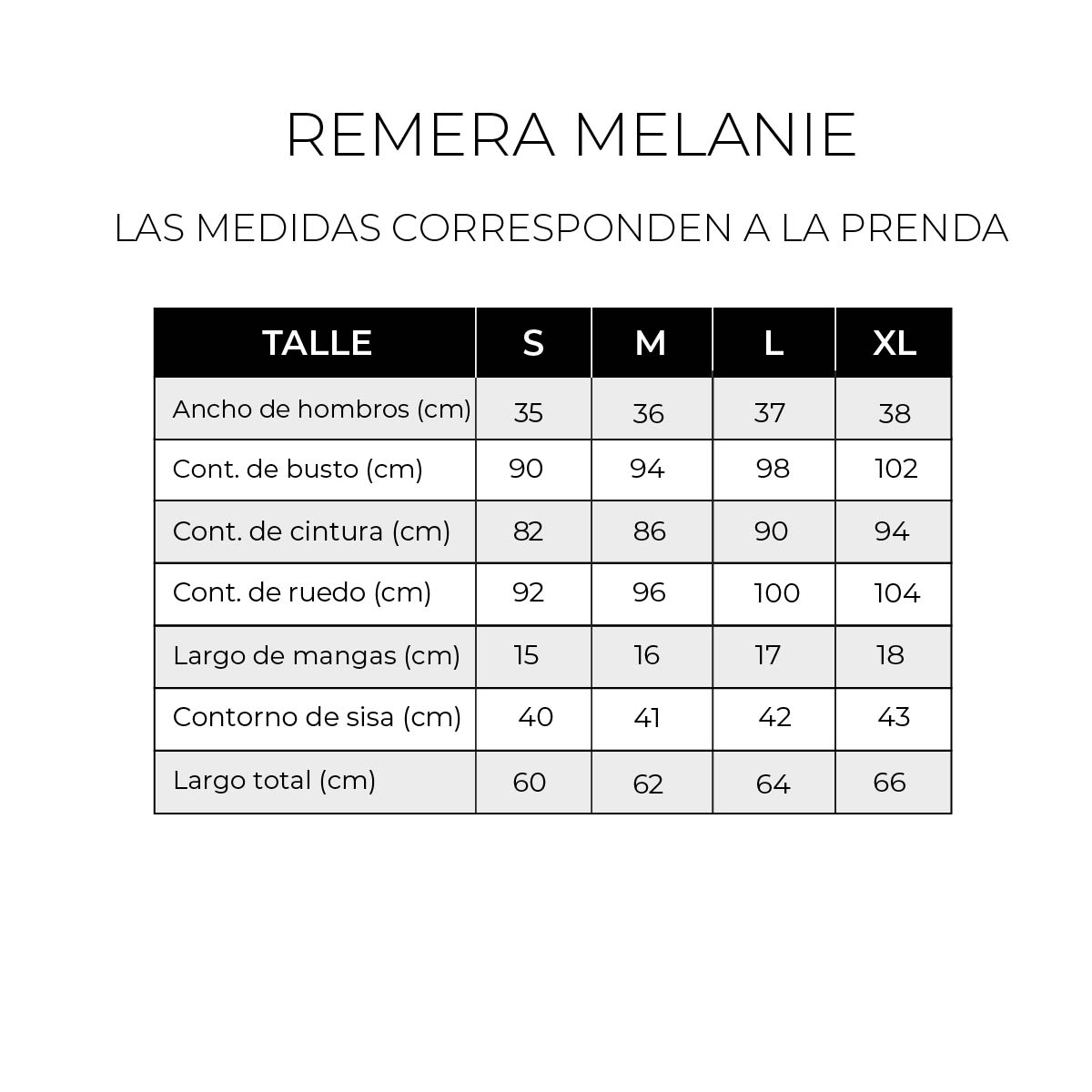 MEDIDAS TOMADAS DE LAS PRENDAS (Recomendamos tomar medidas sobre una prenda favorita).